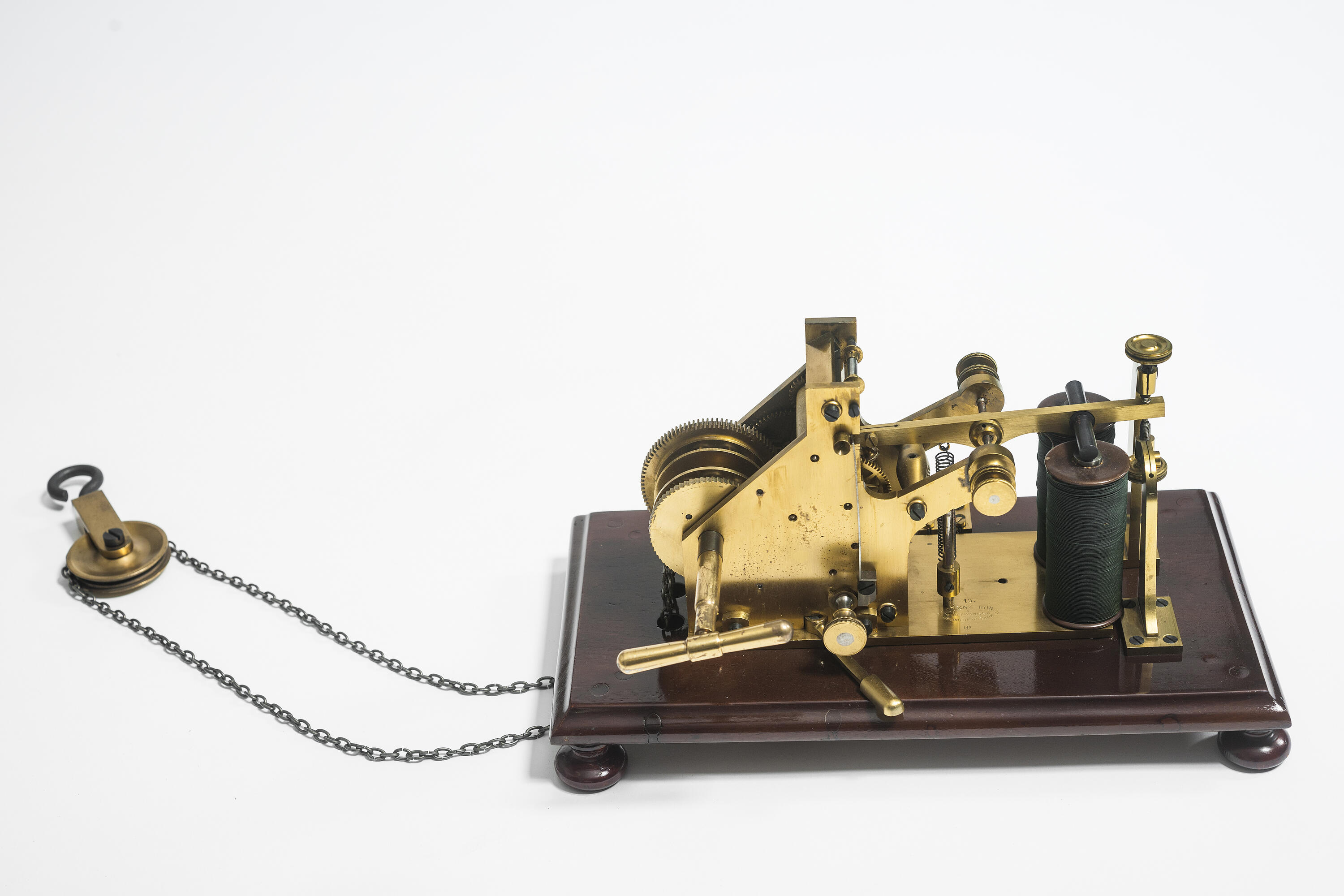 Stiftschreiber / Reliefschreiber mit Gewichtsantrieb der badischen Telegrafenverwaltung, 1849 - 1851; Museumsstiftung Post und Telekommunikation, Inventarnummer: 4.0.30859,