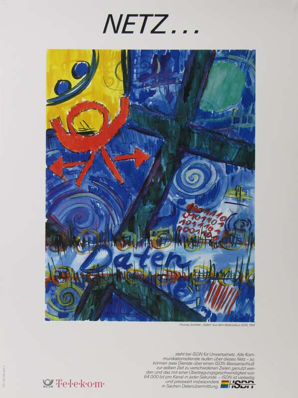 Plakat "Alles über ein Netz. Sprache - Text - Bild - Daten", Bilderzyklus ISDN 1991
