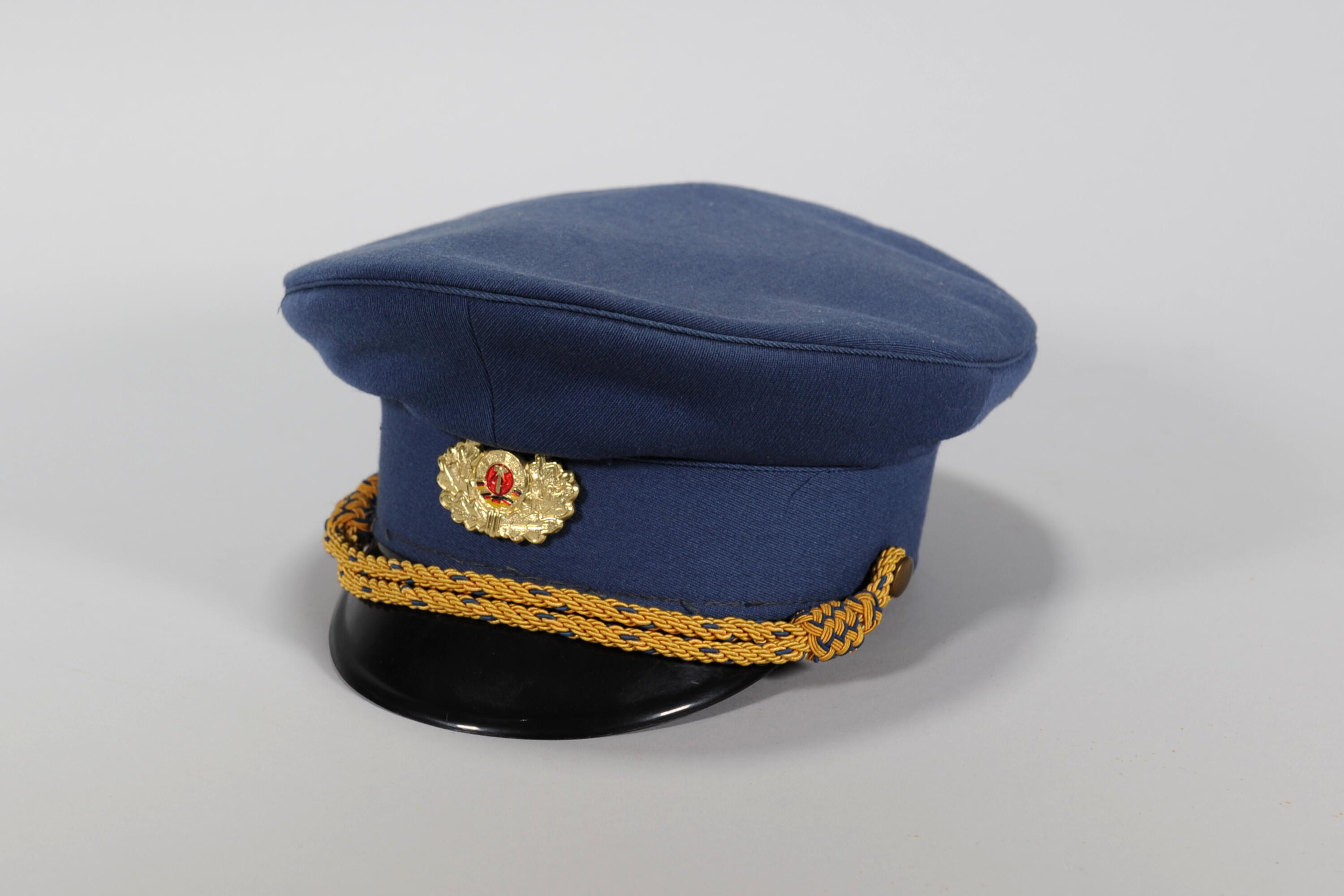 Dienstkleidung, Deutsche Post der DDR, Schirmmütze, Ranggruppe 3, Geschenk an Mitarbeiter des Fernmeldeamts Nürnberg 1 für seinen Einsatz in Chemnitz, ; Museumsstiftung Post und Telekommunikation, Inventarnummer: 3.2015.3630,