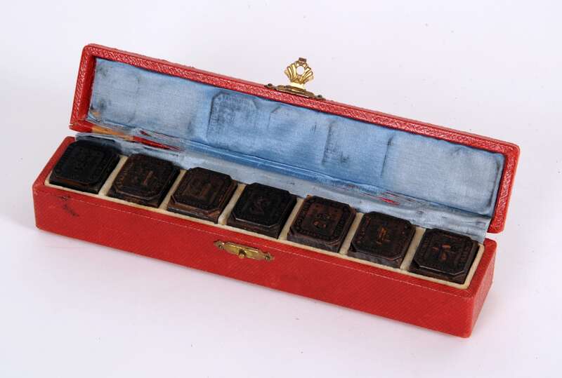 Schatulle mit 20 Druckstöcken für die Freimarke, Ganzsache Umschlag (Altdeutschland, Freie und Hansestadt Hamburg), 1 1/2 Schilling., MiNr. 21, U 3, 1866 - 1867 (Druckstock); Museumsstiftung Post und Telekommunikation, Inventarnummer: 3.2008.1660.0,