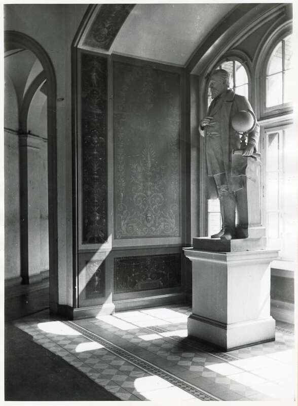 Fotografie, Denkmal des Generalpostmeisters des Deutschen Reichs, Heinrich von Stephan, im Treppenhaus der Oberpostdirektion (OPD) der Deutschen Bundespost in Hamburg, Stephanplatz, ; Museumsstiftung Post und Telekommunikation, Inventarnummer: 3.2022.1474,