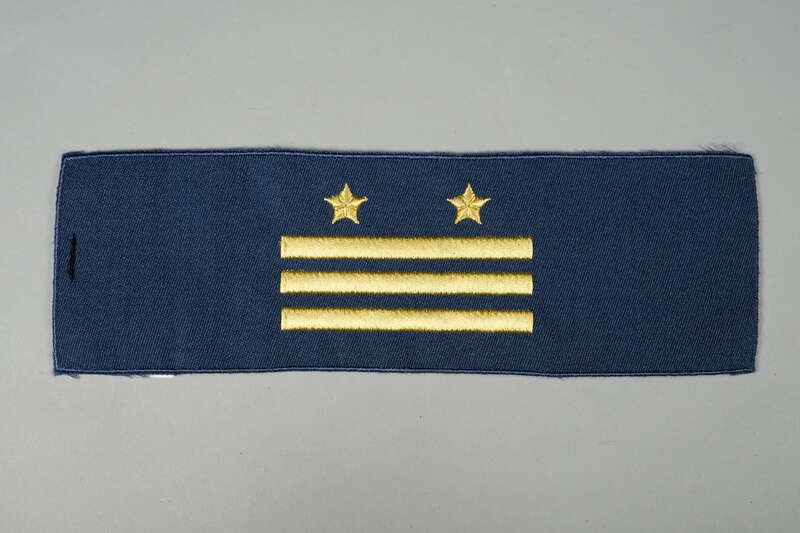Fotografie, Dienstkleidung eines Mitarbeiters der Deutschen Post der DDR (Anzug bestehend aus Jacke mit Dienstrangabzeichen und Hose, Schirmmütze) im Dienstrang eines Oberinspektors nach der Uniformordnung vom 27. August 1976, um 1985; Museumsstiftung Post und Telekommunikation, Inventarnummer: 3.2010.3472,
