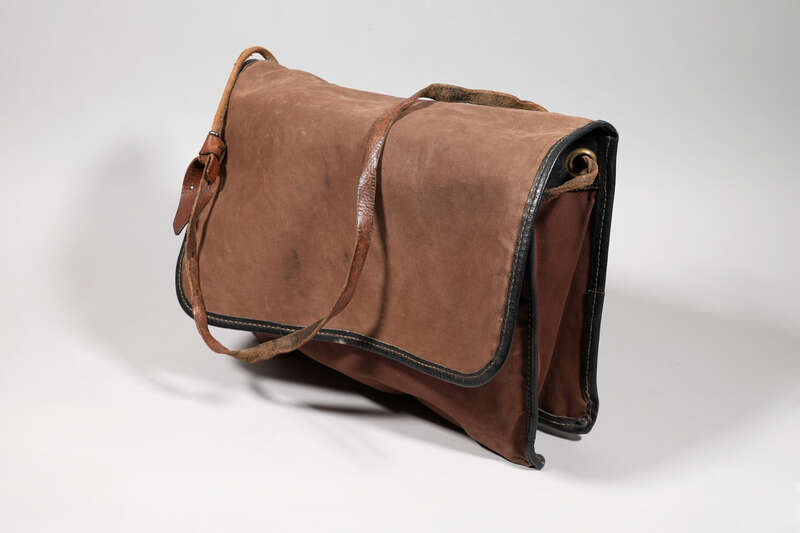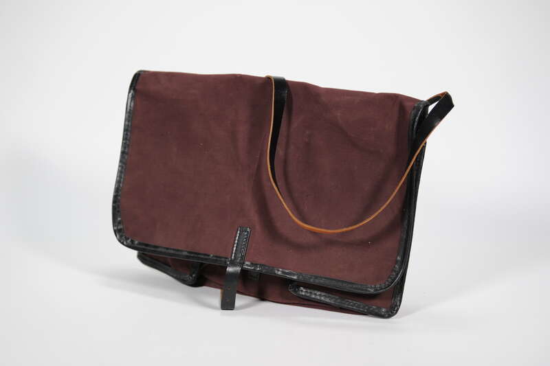 Beitasche für Zusteller der Deutschen Bundespost mit Beschriftung "HEW" für Hamburgische Elektrizitätswerke, 1950er Jahre / 1960er Jahre; Museumsstiftung Post und Telekommunikation, Inventarnummer: 3.2024.3931,