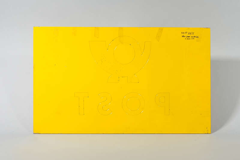 Leuchtschild "Post" für Außenkennzeichnung der Deutschen Bundespost, verwendet in Bayern, ; Museumsstiftung Post und Telekommunikation, Inventarnummer: 3.2017.3635,