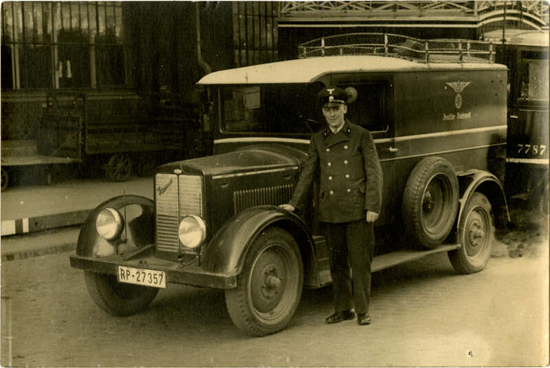 In der Zeit von 24.2.1928 bis zum 12.1.1932 wurde auf dem Kragenspiegel neben dem Kraftwagensymbol auch noch ein nach links blickender Reichadler mit Posthorn in den Fängen getragen (Hilfspostkraftwagenführer).