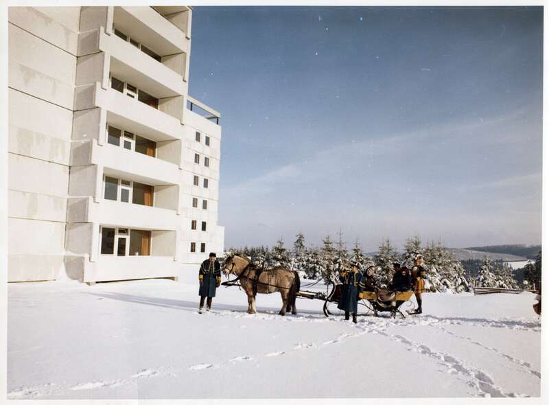 Fotografie, Postschlitten der Deutschen Bundespost im Einsatz für eine Werbefahrt mit Weihnachtsmann in Hahnenklee-Bockswiese, ; Museumsstiftung Post und Telekommunikation, Inventarnummer: 3.2021.883,