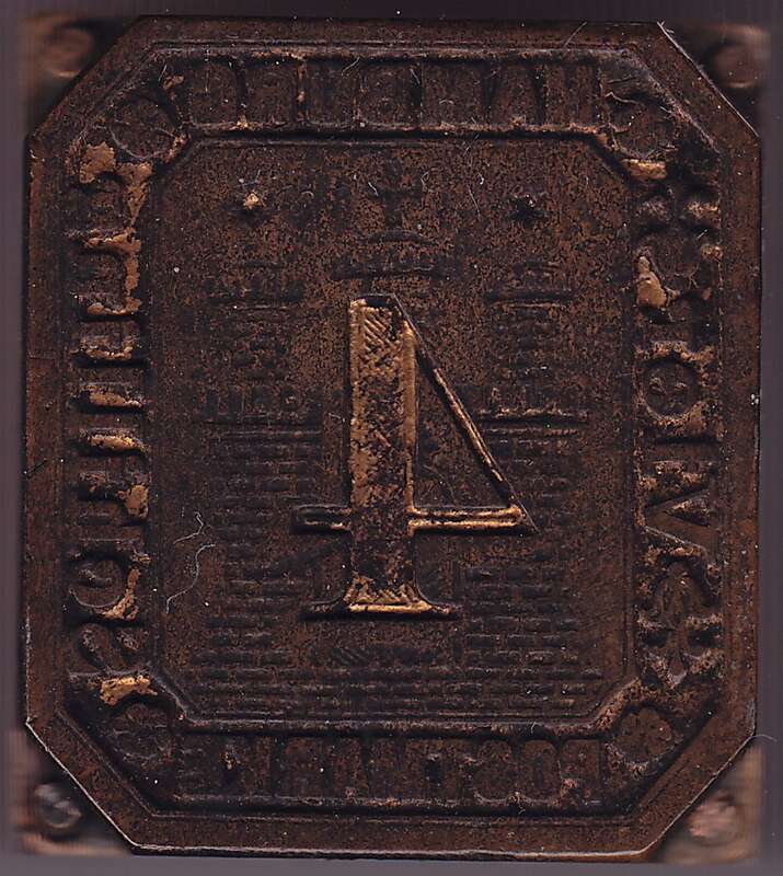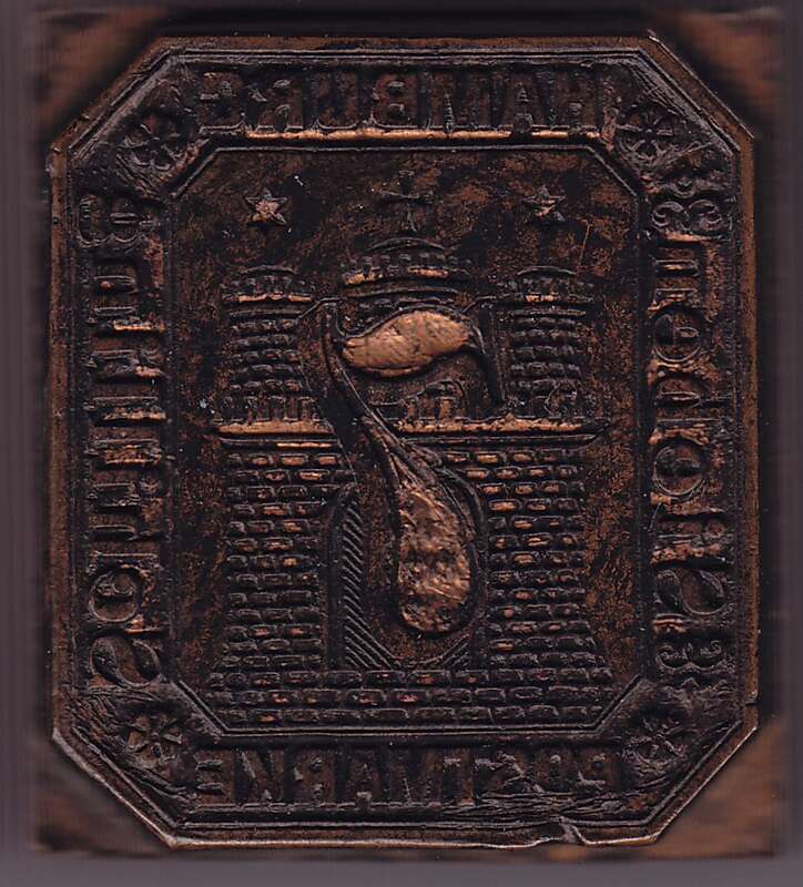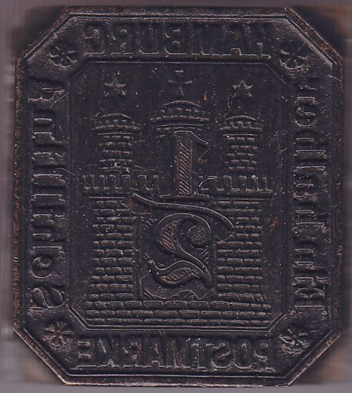 Einzelmarke, Motiv: Wertangabe im Hamburger Wappen, Inschriften im achteckigen Rahmen, spiegelbildlich